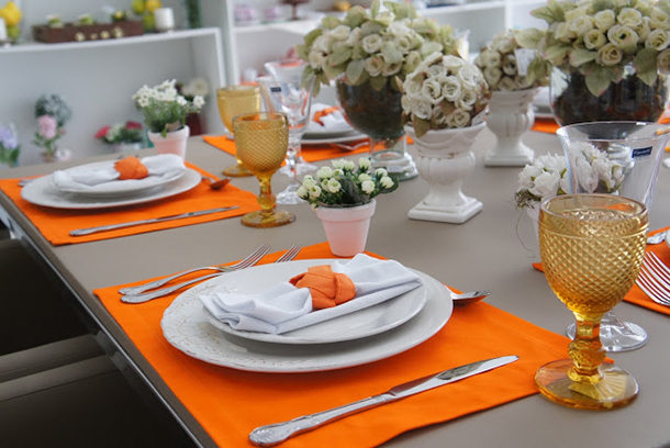 Pratos, talheres e elementos da mesa de jantar também podem receber esse toque especial da estação mais quente do ano.