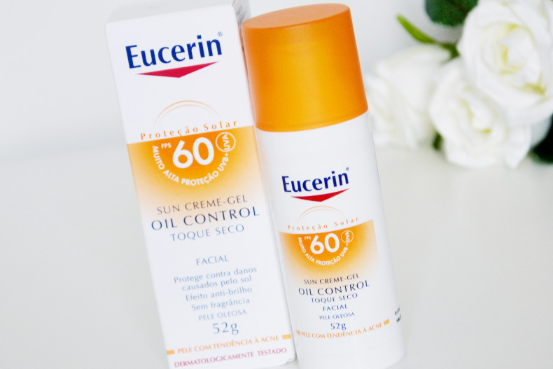 Para os homens eu indico o Eucerin Oil Control 60, que é bem seco e não deixa nenhum resíduo na barba. O rosto não fica branco e nem melado.