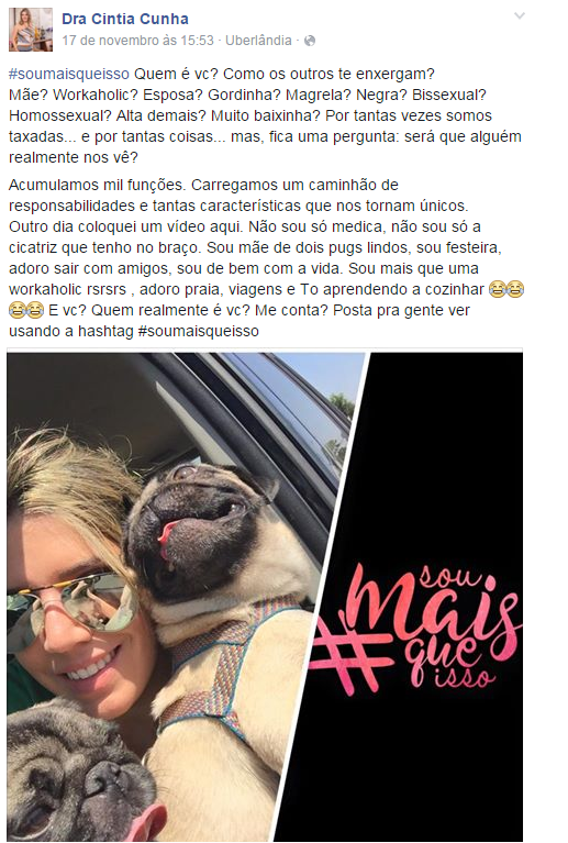 Todas nós somos mais que isso! Somos mais que nossa profissão, nossa aparência, nossa cor, nossa idade, nossas cicatrizes e nossos hábitos. Por isso criamos uma campanha para refletir sobre isso e mostrar o nosso outro lado, aquele que quase ninguém vê. Afinal, temos tantos né?