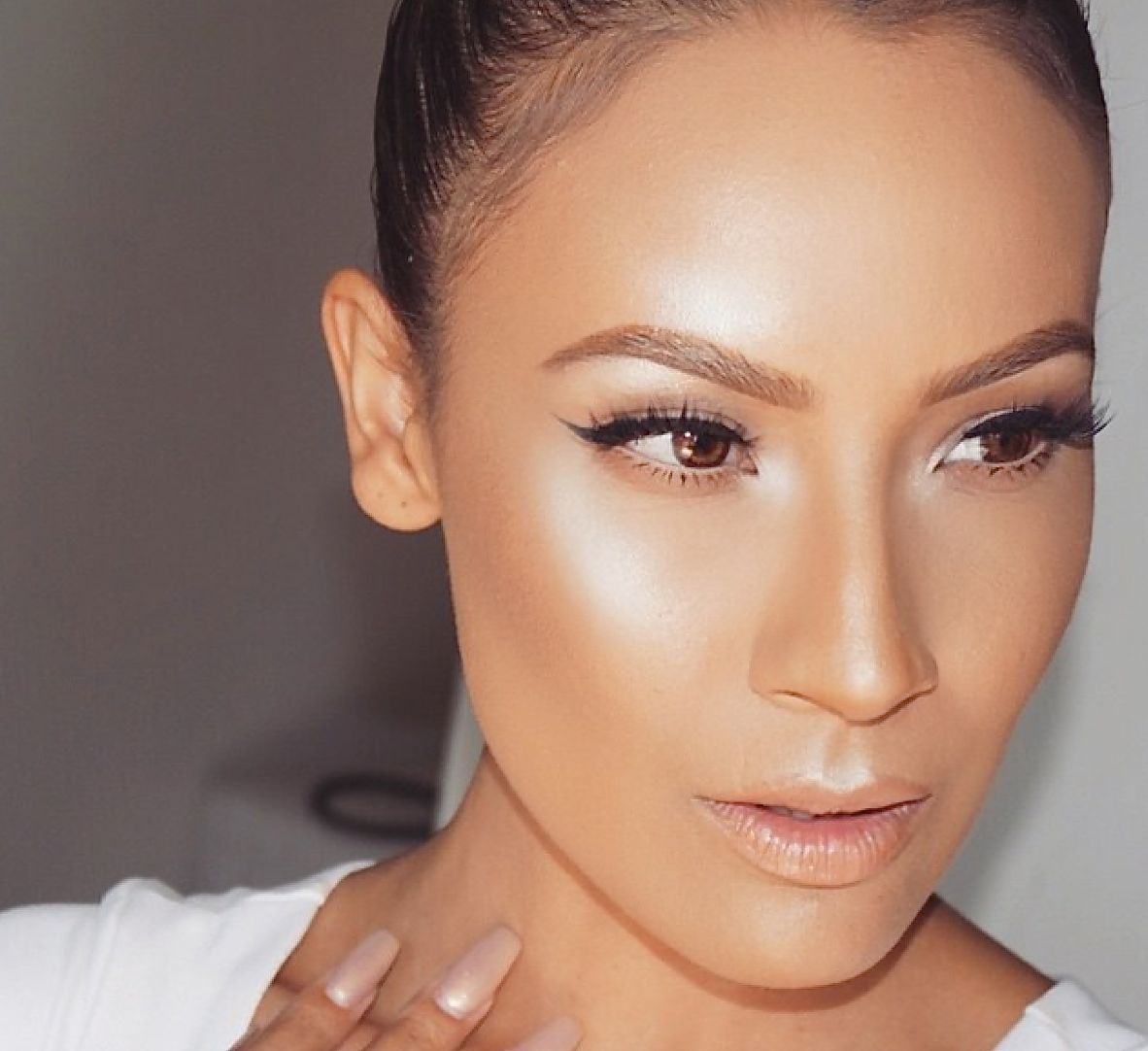 Você consegue fazer essa tendência com iluminadores tanto com textura líquida, aplicados com os dedos quanto com os que estão na versão creme ou bastão, com o auxílio de um pincel fino.