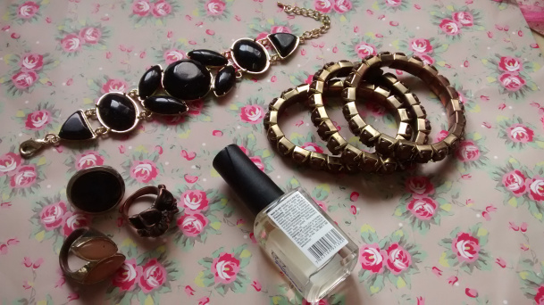 Para isso não acontecer mais, vou ensinar um truque para vocês: é só passar uma base de unha na parte de dentro do anel ou na área da biju que ficar em contato com a pele. Espere secar e aí você já pode usar o acessório normalmente.